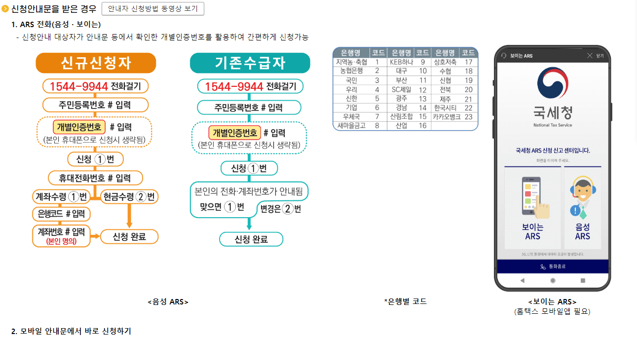 서비스 이용시간 06:00~24:00 ARS 전화신청 홈택스 신청이 가능합니다