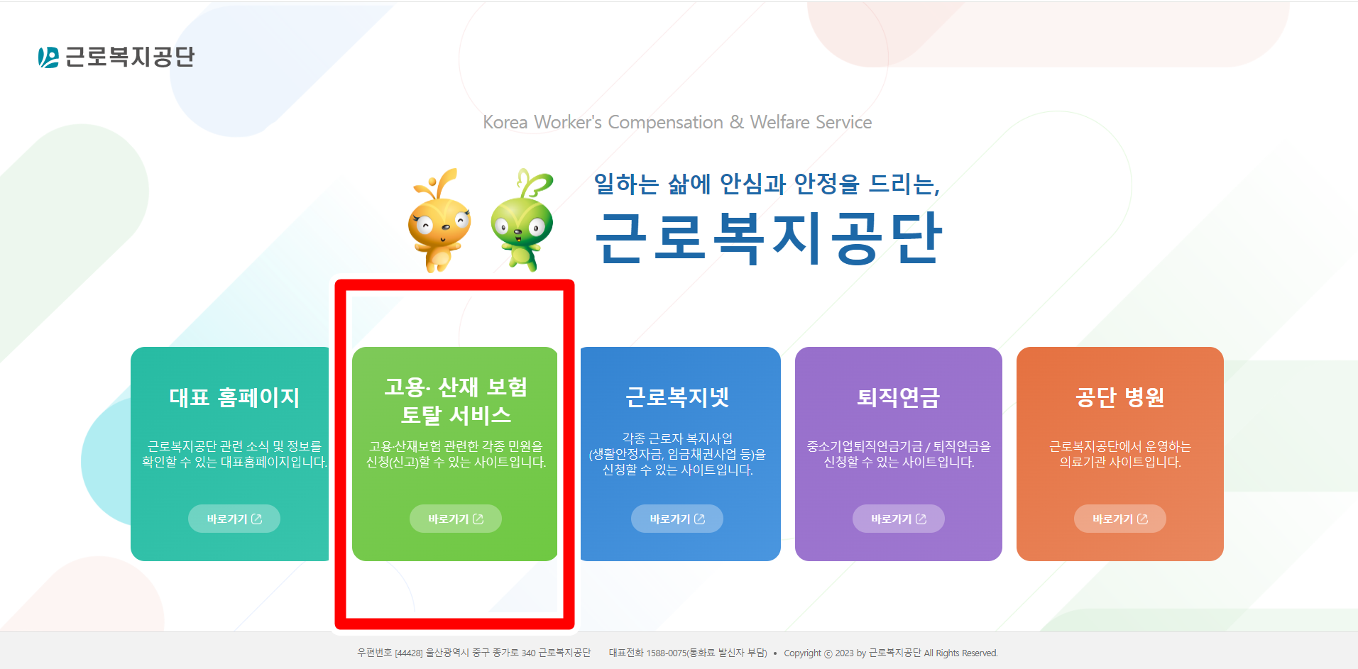 1. 우선 근로복지공단 사이트에 바로 간 다음에 빨간색 네모난부분 클릭